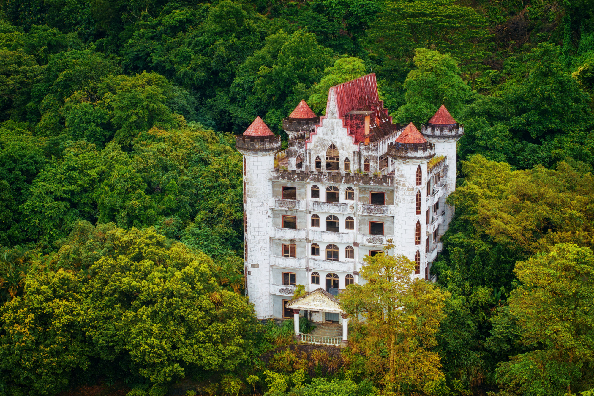 ..the golden splendour of a former religious centre in Taiwan contrasts with the surrounding nature, which is slowly reclaiming the building.
