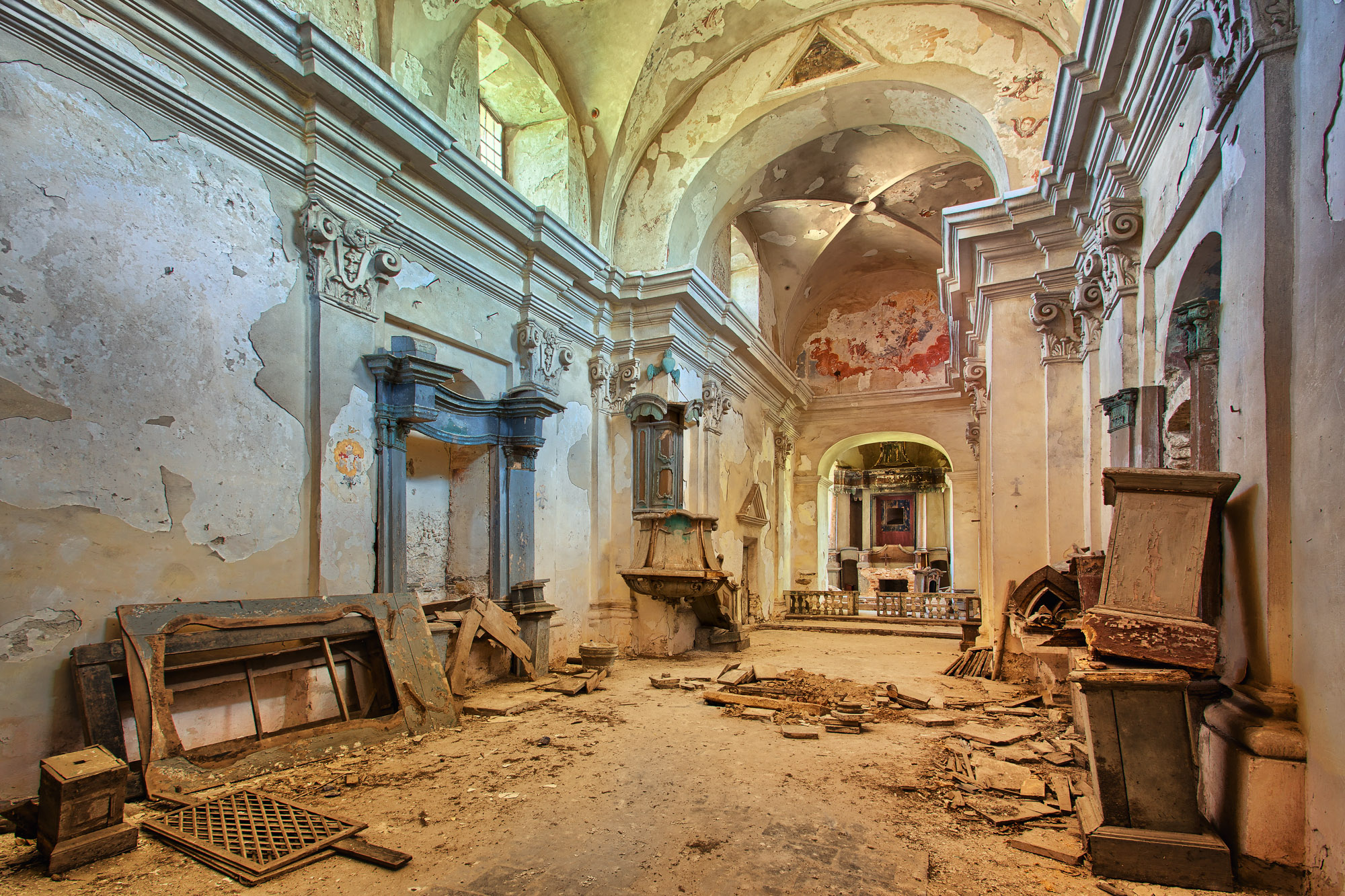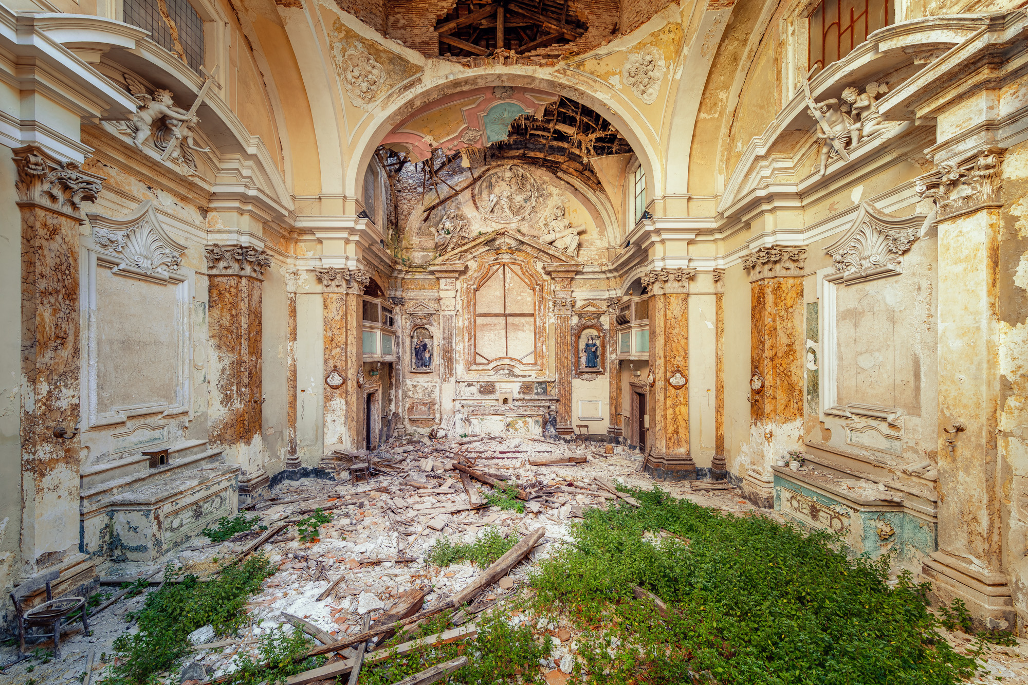 The roof of this church collapsed years ago and now the decay is progressing inexorably.