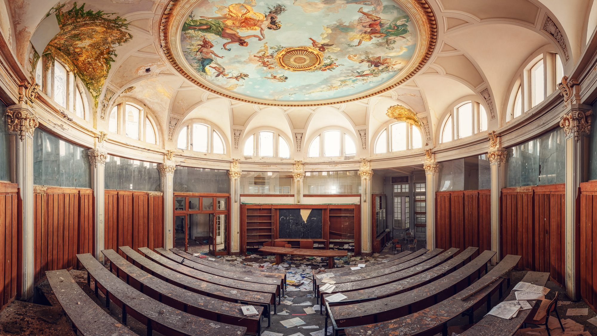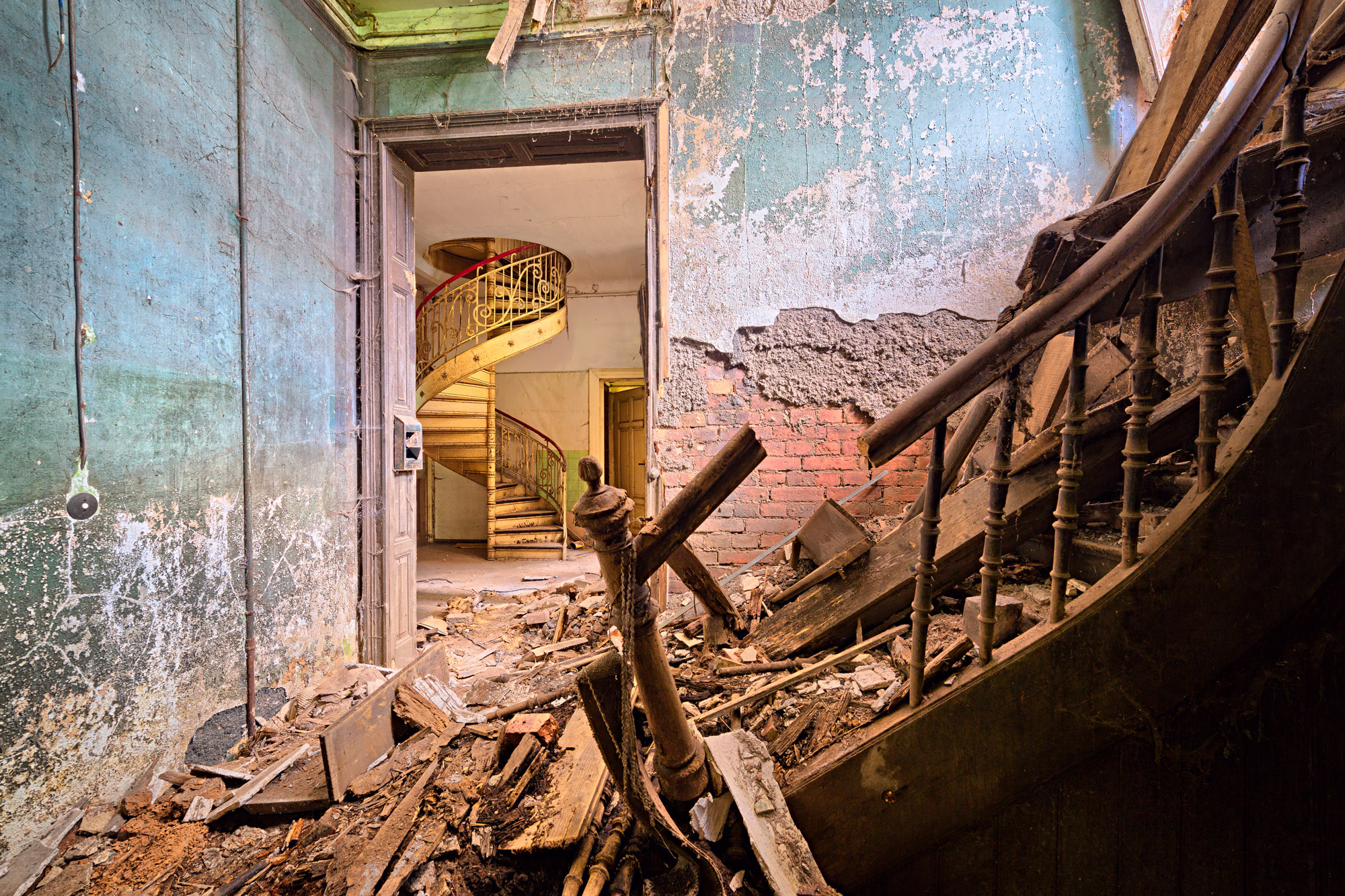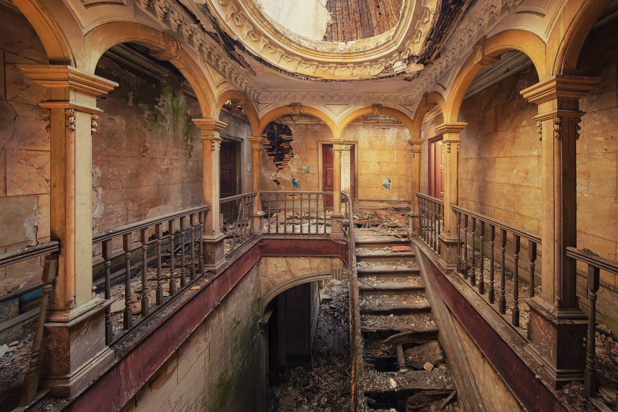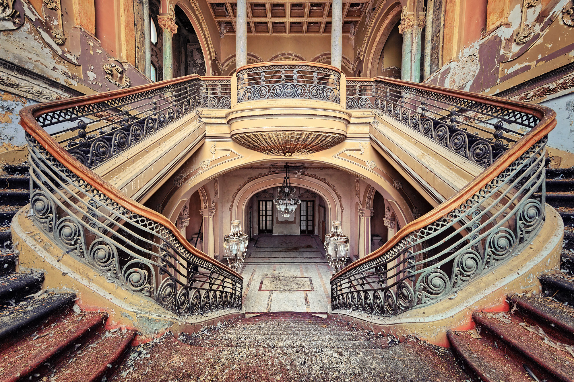 the grand staircase of an abandoned sanatorium in a spa resort in the former Soviet Union