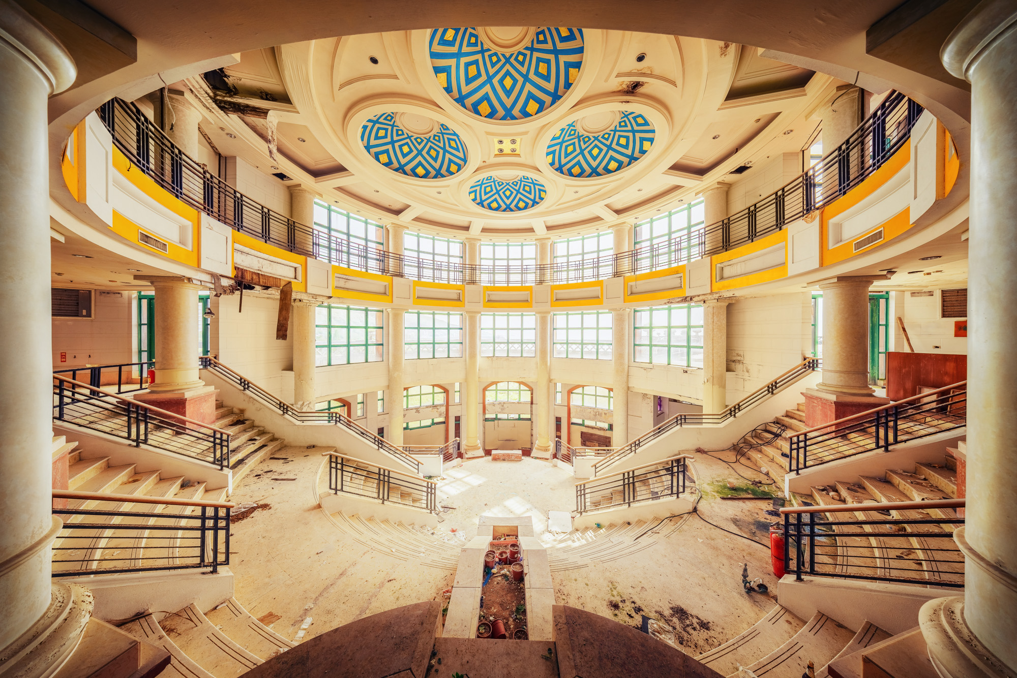 ..once a grand hotel, now a silent relic where dust and time quietly reclaim every corner.“